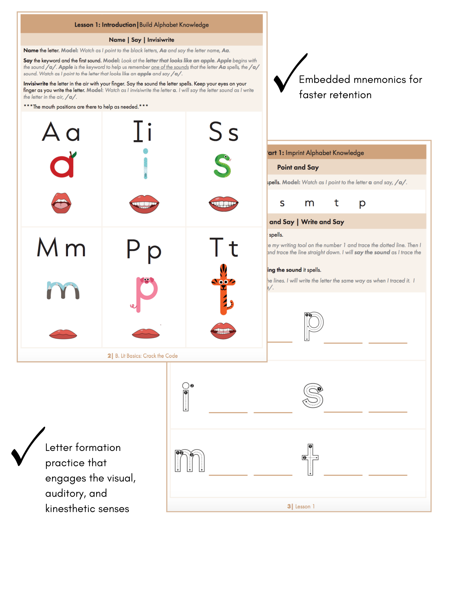 The B.Lit Basics™ Crack the Code workbooks build foundational literacy skills for reading and writing, including: